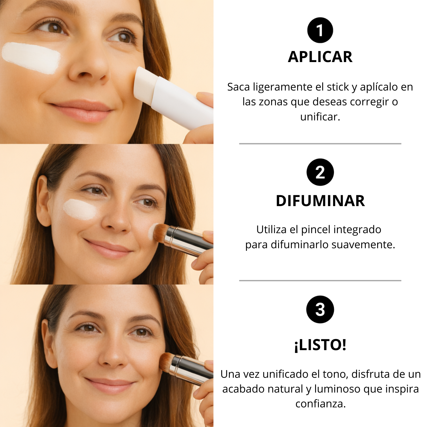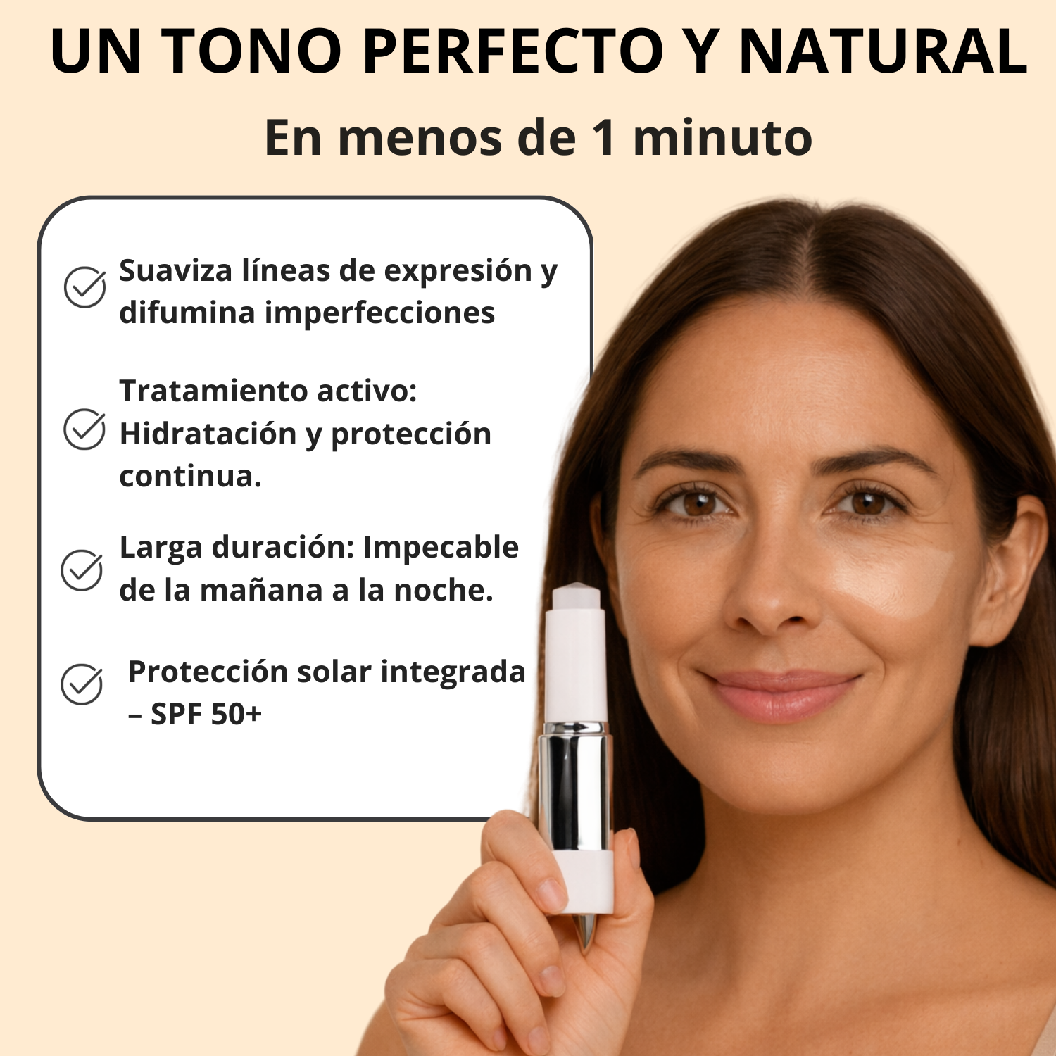 - Se acabaron las dudas con el tono, este stick se adapta al instante a tu tono de piel.